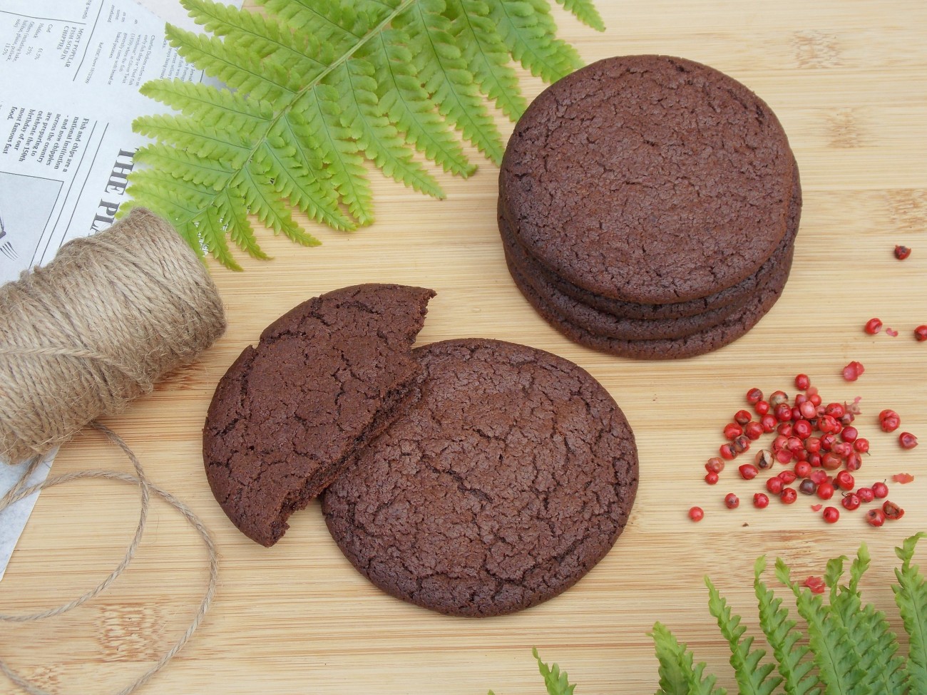 Połączenie czekolady i ostrych przypraw takich jak chili bądź też pieprz zawsze ze sobą wspaniale współgra. Dziś główną rolę gra właśnie czekolada i różowy pieprz. Mocno czekoladowe ciastka z dodatkiem różowego pieprzu to idealne połączenie. Ich subtelny, dobrze wyważony ostry smak, doskonale współgra ze smakiem wytrawnego kakao i słodyczą czekolady. Ciasteczka z wierzchu są chrupiące, a w środku miękkie, delikatne i uzależniające.